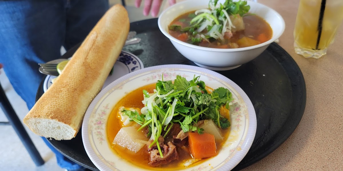 Another dish that should not be missed is the Bun Sua, a satisfying noodle dish that bursts with flavor, paired with your choice of proteins for a customizable meal. If you’re in the mood for something more comforting, the Bo Kho with Baguette is a must-try. This slow-cooked beef stew, served alongside a crispy baguette, offers a combination of tender meat and savory spices that make it a perfect dish for a chilly evening.